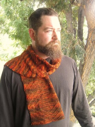 The scarf in my Fireside collection, Hot Buttered Rum is a graphic scarf that—let's face it—is equally suited for men or women. The textured diamond motifs look great in a solid or tonal variegated yarn.