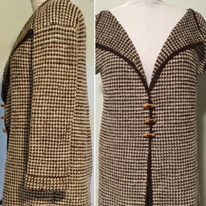 A cardigan crochet pattern designed with basic crochet stitches to create a beautiful repeating houndstooth pattern. The houndstooth design is created with alternating single-crochet and double-crochet stitches using two contrasting yarns. The pattern is written based on hip circumference: (S, M, L, XL, 2XL) for hip circumference (36”, 38”, 40”, 44”, 48”) or (90cm, 95cm, 100cm, 110cm, 120cm). The pattern can be modified for different sizes or fits. It can also be created as a vest, short-sleeved or long-sleeved cardigan. Buttons, toggles, hook and eye closures, etc. can be added at the top or middle to improve or alter fit slightly.