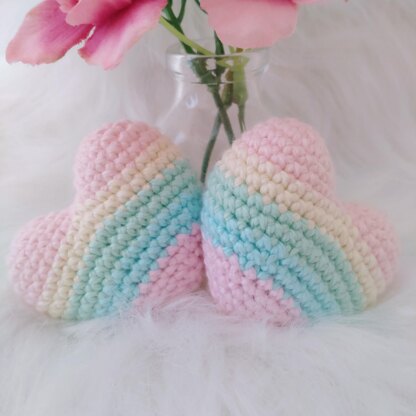 Rainbow hearts for any occasion, make them in small, medium or big sizes, depending on the chosen yarn weight