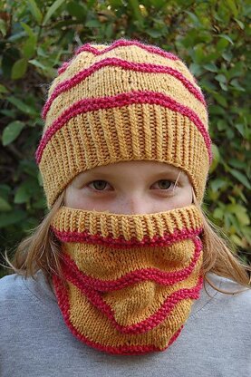 The cowl goes perfectly with the Hug of the Ocean Hat and the matching mittens.