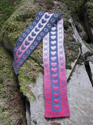 Tricky knitting that will produce hugs (O) on one side and kisses (X) on the other! This pattern may be worked from the charts or from the written directions. The hearts may be padded to add a new dimension.