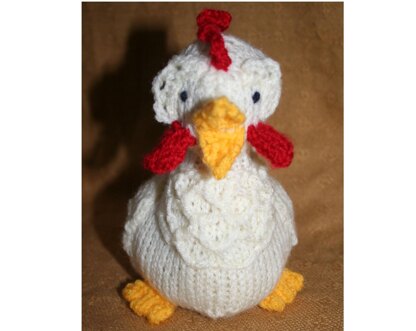 Cornelia wird, wenn Sie mittelstarke Wolle verwenden ca 17cm hoch und 14cm lang . Körper, Kopf, Füße, Flügel und die Kehllappen werden gestrickt, Kamm, Schwanz, Brustfedern, Schnabel, Augenbrauen und die Augen gehäkelt.