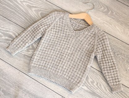 Knitted seamlessly from the top down, Humphrey has an all-over texture which adds interest and warmth to this classic V-neck jumper.