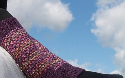 Hunajaiset leg warmers are made in collaboration with Opal yarns to highlight their Sweet Dreams collection. These leg warmers are worked top down with slight shaping at the ankle. The fast and easy-to-knit stitch pattern is perfect for showing off the self-striping Sweet Dreams yarn. Slipped stitches in a solid Opal 6-ply create shadows and texture on the leg in a honeycomb pattern. Wide cuffs of mock-cabled ribbing in the contrast color set off the patterned leg. The Hunajaiset leg warmers pattern and Sweet Dreams yarn make the sweetest match for chilly autumn days.