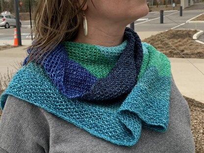 This shawl is my way to bring on those wonderful sunny days. Knitting with the bright colors of Anzula Squishy Skeinettes Chain in Ocean Blues is a great way to get ready for the warm days that are coming soon! The bright colors are bound to get rid of these dark days and bring on the sun!