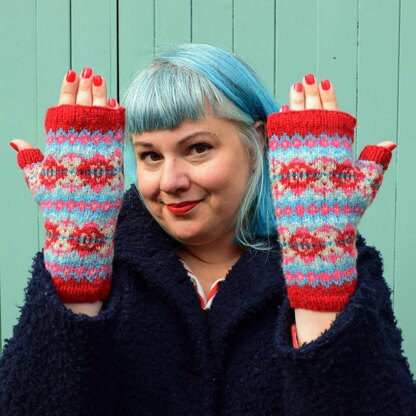 Worked in a signature Scottish yarn, the Hyndland fingerless mittens celebrates both the Scottish traditions of beautiful colourwork knitting and the delightful architectural details found in Glasgow, Scotland.