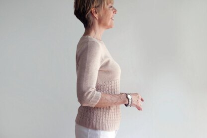 I Know That Look is a delicate pullover with a questionable name – there's a story there. This design is worked bottom up and seamlessly in the round. Shown in Quince and Co.'s Tern yarn, this silk wool blend knits up lightly with wonderful drape. Half-length sleeves are bottom up in the round as well, with short rows at their cap for smooth shaping and ease in setting in. Extending just below the elbow, I think of these as long-short sleeves – a perfect length for seasonal transitions. Enjoy!