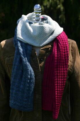 A fun, easy rectangular wrap made with 3 different stitch patterns.