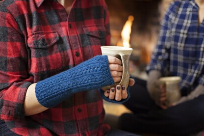 The winter winds might be howling, but your hands and wrists can be cuddled in cashmere! Knit in a Plucky sport weight yarn, these fingerless mitts are light and lofty, but still decadently warm. They are knit in the round, with cable details on the tops and a simple thumb gore, sure to keep all your digits nice and warm.