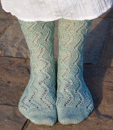 Yarn: Lichen and Lace 80/20 Sock Yarn, 80% SW Merino/20% Nylon, 365 yards/100g (Sample knit in Beach Glass)