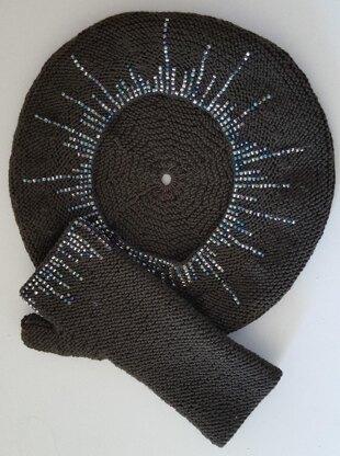 This striking garter stitch beret and matching mitts are embellished with an optional bead design.