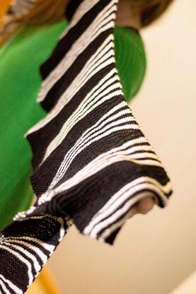First of all, I will answer the question of, "How do I pronounce that?" It is pronounced: Eeker, Iker is a long, slightly curved, sideways knit, scarf that utilizes short row wedges and stripes for visual interest. Size One Size
