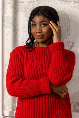 Notes: The pullover is worked back and forth in separate pieces, then turned inside out and seamed. The neckband is worked in the round and double. The cowl is worked in rib in the round and has one wide and one narrow end.