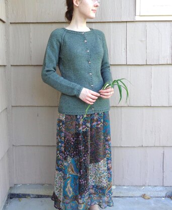 Imogen is a shaped cardigan, easily dressed up or down. Super cute for layering with a flattering boat neck, eyelet details, and a slimmer fit. Knit top down in one piece with raglan sleeves.