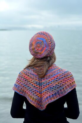 This small shawlette is designed to use up one skein of Hand Painted Knitting Yarns Precious, but the modular design of body and edging mean that you can use it for any amount of pretty worsted weight yarn. A staggered version of the classic Shetland stitch Mrs. Hunter’s Pattern interrupts rows of stockinette and leads into a faggoted lace edging, breaking up a highly variegated colorway and creating a beautiful piece reminiscent of an Impressionist painting.