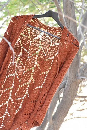 The cardi is worked from the bottom up and is divided into panels at the top for minimal sewing. The pattern is super versatile; includes notes on how to make it long sleeve, short or sleeveless.
