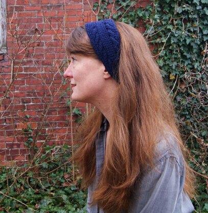 A quick headband/warmer worked with simple cables that knits up in a flash. (available as an individual pattern or part of A Few Quick Gifts ebook) Materials:Osprey by Quince and Co. (100% American wool; 100 gram skein = approx 170 yds/ 155 m) • 1 skein Peacoat Needles • One pair needles size US 10 (6 mm).Or size to obtain gauge.