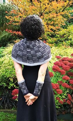Incognito, presented in three sizes, begins at the bottom with a seed stitch border, then the slip-stitch colorwork begins. The shaping happens as you follow the pattern charts up to the top. The matching cuffs are also in three sizes for a perfect fit.