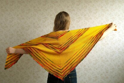 Indian Summer is a triangular shawl with stripes. It is worked from top down, in stockinette stitch.