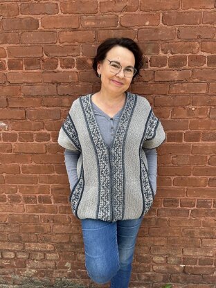 - Notions: Separating zipper 15”/38cm long or 3 Norwegian pewter clasps, markers, stitch holders, tapestry needle