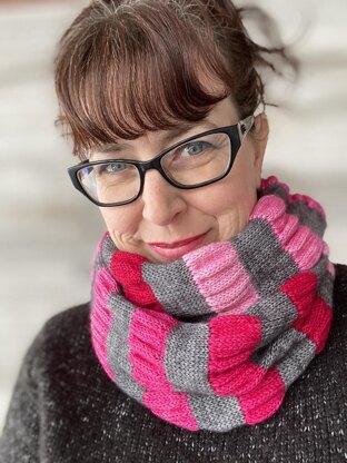 Infinite Ruffle Ripple is a fun infinity cowl that can be worked in a gorgeous gradient (as pictured) or with an assortment of mini skeins. This cowl can be worn in a stylish single loop or doubled up for extra warmth. It's knit as a long tube starting with a provisional cast on and grafted together for a seamless look