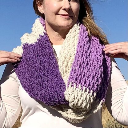 One easy but elegant rippled stitch pattern is repeated in color blocks throughout this infinity scarf for a cozy and playful accessory you can wear in lots of different ways. Choose your colors and have fun! Thank you for choosing this pattern, let’s get started and together crochet something beautiful ~ CM