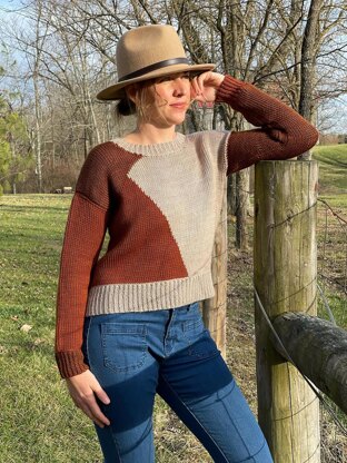 The Influencer Sweater is a color block, pullover sweater with drop sleeves, and a slightly relaxed fit. Influencer got its name from being influenced on social media to try a sweater from an online clothing store. The sweater didn't fit me right, so I designed one with that inspiration.