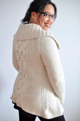 Need a nice warm hug? Innisfil is here for you! Cozy up by the fire (or laptop) in this chunky cabled cardigan with big buttons and a deep, snuggly ribbed collar. The large-scale Baroque Cable panel is fun to knit and delivers huge visual impact! The longer length and fully fashioned waist shaping are super flattering and easy to wear, perfect for a heavy winter layer or fall jacket. Innisfil is worked seamlessly from the bottom up with full length sleeves knit in the round, raglan shaping, garter rib side panels and ribbed buttonbands.