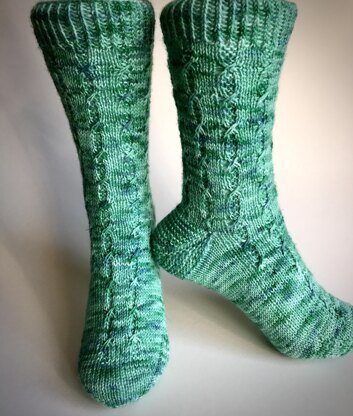 I love socks with just the right amount of challenge and these hit the spot. The twisted pattern is eay to remember and fun to knit. This design works well with solids, semi solids and speckled yarns. Knit from the top down with a garter stitch short row heel and a tradtional toe. Easy enough to knit on the go or whilst watching your series.