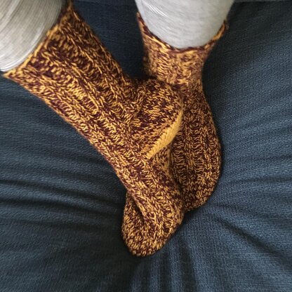 These extra quick ribbed cuff-down socks feature a Strong heel (with optional contrast heel) and short-row toes. In 3 adult sizes with full written instructions, customization ideas, resizing guidelines, and a brief Kitchener stitch tutorial. Pattern utilizes stitch counts and markers to adapt to your preferred needle configuration (DPN, magic loop, etc)