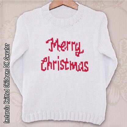 Merry christmas Chart and written instructions for Childrens Dk Sweater.