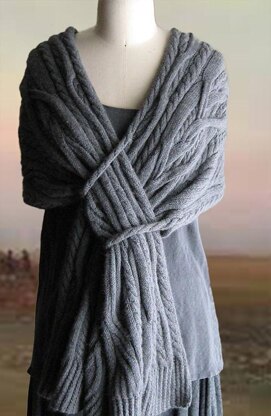 Cozy stole with elegant cables, self closure and shaped shoulders ... also yummy as a scarf.