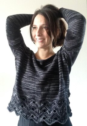 The Inti Sweater is a delicate lace-hem sweater pattern, worked in the round from bottom up. The boxy, cropped fit makes it a great versatile piece to go with any outfit, from skirts to high-waisted pants, on a chilly summer night or a sunny winter day.