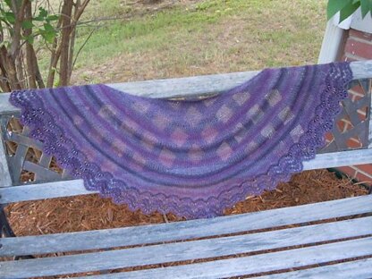 This shawl is a semi circle shawl. I always block it more like a phoenix bird or crescent. It is a simple shawl, worked from the neck down. Warning this has about 500 beads in only 4 pattern rows of the edging. IT IS WORTH IT! These are placed on individually with a crochet hook. I am recommending 450 yards. PLEASE TAKE TIME TO CHECK GAUGE. If your gauge is looser than what I call for, you may run too close for comfort on yardage. There are no charts in this pattern. It is a very simple design of edging that did not need a chart to comprehend. Enjoy being Intriqued With Beads". Thanks to LostCityDenise for naming the shawl.