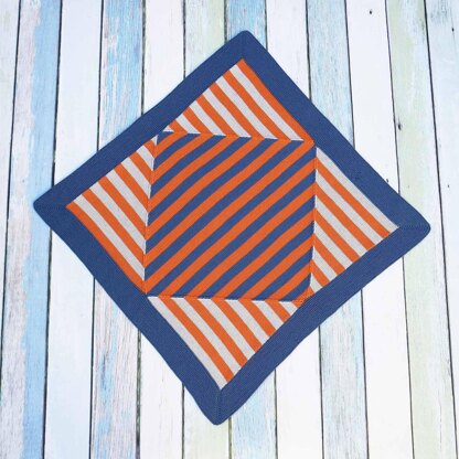 Four striped triangles are worked separately, and the shaped edges are joined to the centre panel. The fashioned decreasing creates an easy sewing edge, perfect for mattress stitch.