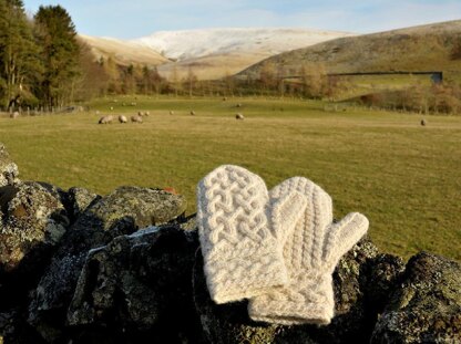 Cable patterns are great for keeping your hands warm in Scottish weather! They create a thick, dense fabric to protect you from the cold, and make your hands feel warm and cosy. The cable patterns of these mittens are inspired by traditional Scottish knitting, and by the patterns carved on stone crosses and cross slabs in Iona and all over Scotland.