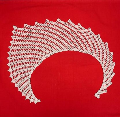 Iris is an asymmetric wrap which uses the pretty Iris stitch. Increases are made at the beginning of every second row. These form the distinctive curve on the upper edge of the wrap (longest side). Decreases at the end of every fifth row form the decorative ‘steps’ on the opposite, or lower, edge of the wrap. In the last row the Iris stitches are replacing by shell picot stitches to give a pretty edging to the third side of this irregular triangle. When you’ve completed the final row you’re finished. The edging is all worked as-you-go so you can keep going until your yarn runs out. So this a great project for a special skein or ball of yarn.