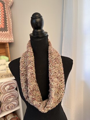 This pattern was designed specifically for my Mom. She requested a lightweight cowl that she could wear in the spring/summer months. This pattern has a one-row repeat, so it is perfect for making while watching your favorite show. It is a fast make and can be used all year.