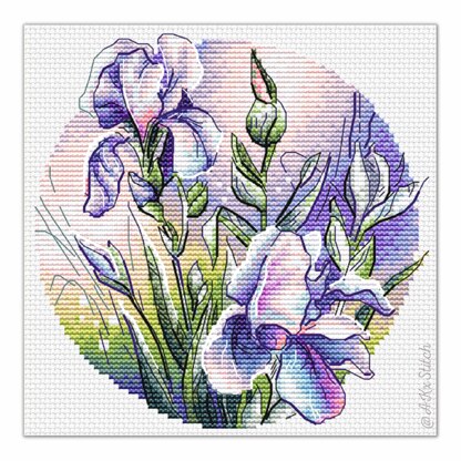Irises Flowers Counted Cross Stitch. Easy to Follow Embroidery Chart featuring stunning purple irises. Great handmade gift idea for a friend or family.\n\nSize: 80w x 80h stitches\nStitched on Aida 14ct: approx 15 x 15 cm (6 x 6 in)\nDMC Threads: 30 solid colours (5 blends)\nUsed stitches: full cross stitch, backstitch\nSkill level: Beginner / Intermediate\n \n\nCross stitch pattern in PDF, Instant Digital Download includes: 1) cover page with preview; 2) instructions, symbols key and shopping list (DMC thread colour numbers and estimates, as well as fabric options); 3) two black and white charts, with and without backstitch; 4) two colour charts, with and without backstitch; 5) single page PDF for Pattern Keeper (available on request).\n\nPlease note: This pattern is for personal use only - not for commercial use. You can't make copies of our charts to distribute (either as PDF or printed versions) but you can definitely sell your finished cross stitch work.