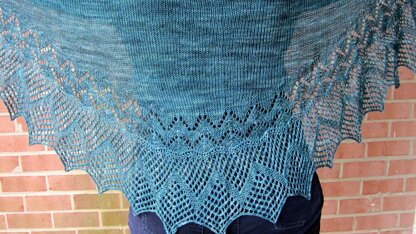 This is a pattern for a very "long wingspan" crescent shaped shawlette that is comprised of two different lace stitches. The ornate lace edging stitch is added in the traditional Shetland manner, and gives a beautiful and graceful bottom to the shawlette. Nor is it nearly as difficult as it looks. The shawlette measures 68 inches at the widest points across the top and is 22 inches deep at the deepest point. It is made with a heavier of the fingering weight yarns, and is knit on size 7 (U.S.) needles. The shawlette requires approximately 700 yards of yarn making it both a perfect first time lace shawl project, as well as the perfect gift. The stitches are both charted and written out line by line. Skill Level: Intermediate (assuming a basic knowledge of lace knitting).