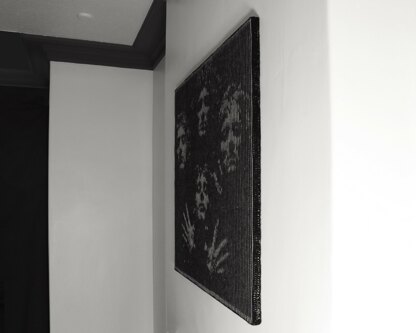 The faces are barely visible in the original images so it was particularly difficult to capture the ethereal look in illusion knitting. The knitting is easy.