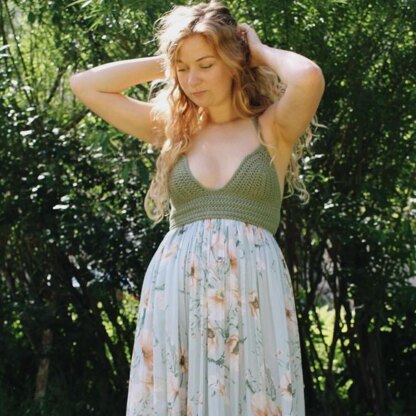 This easy to follow design is constructed using basic stitches, perfect for the beginner crocheter. If you can double crochet and half treble crochet, you can make this! The pattern creates a small crochet bralette, however, options and adjustments for larger sizes are offered. Several pattern variations are also included so you can tailor the top to suit your body best. The two identical cups are crocheted first before adding the body panel underneath. Finally, the halter straps are added and the tie back created so you can weave and secure the body in place.