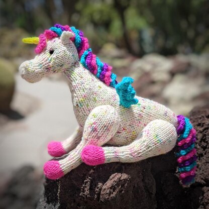 Unicorns are found in the folklore of countries around the world, from ancient Mesopotamia and Greece, to India and China. Unicorns are a symbol of purity, and their horns were believed to cure poisons. In the middle ages, cups made out of “unicorn” horns (but actually rhinoceros horn or narwhal tusk) were a hot commodity, as they were believed to protect the drinker from poisons. A winged unicorn is sometimes called an Alicorn or Pegacorn, and is traditionally a symbol of light (while a winged bull is a symbol of destruction). Rainbows are products of sunlight, so that must be why Isadora has so many beautiful colors!