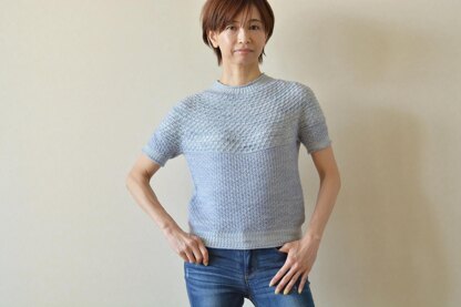 “Ishidatami” – stone pavement in Japanese – is a circular yoke pullover with a simple mosaic pattern and a dot pattern. The sleeves come with two options – short or long. It suits well both casual and feminine outfits.