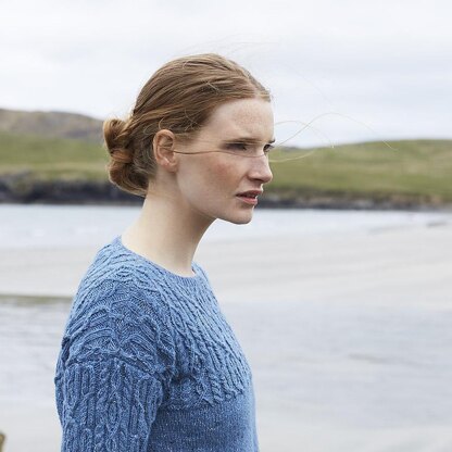 ISLAY is one of my personal favourites as it’s a really easy garment to wear and it from the NORTH SEA collection. Team it with a treasured pair of jeans or a denim skirt and it will look great…knitted in a different neutral colour and it would go with anything! Also, this is a fairly simple design to knit, the cable yoke although looks difficult, is in fact achievable by the average knitter. ISLAY is knitted in Rowan Felted Tweed and colour I’ve used is Maritime.