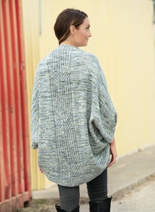 Inspired by the migration of birds each fall to escape the cold, the Itatiaia Cocoon is a cozy and oversized bolero-shaped garment. The pattern is worked in an attractive combination of ribbing, cables, and stockinette stitch, with details at the back and sleeves. Because of its simple construction, this garment is highly customizable in both width and length.