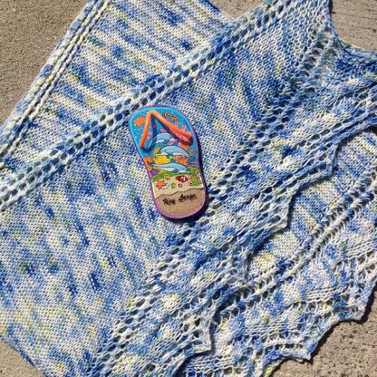 This is a sideways shawl that was inspired by a beautiful skein of [Simple Sock from HauteKnitYarns][1], in colorway Beachy Sky. It was reminded me of being on the beach early in the morning as the sun is coming up and the peaceful roar of the waves coming ashore and the crisp salty smell of the air.