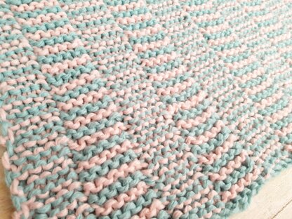 This lovely reversible blanket pattern comes in 3 sizes and is very easy and quick to knit. The ingenious use of garter stitch adds visual interest as well as soft pleats in the finished blanket. Using just two contrasting colours and reversing garter stitches, even a beginner can create this stunning blanket in no time. The pattern comes in 3 sizes: Stroller: 75 x 95 cm or 30 x 38 " Receiving: 95 x 95 cm or 38 x 38 " Toddler: 105 x 135 cm or 42 x 52 " Materials: Super Chunky or Bulky Yarn Yarn Suggestions: Debbie Bliss Roma, Paintbox Yarns Wool Mix Super Chunky, Lana Grossa Mille II,