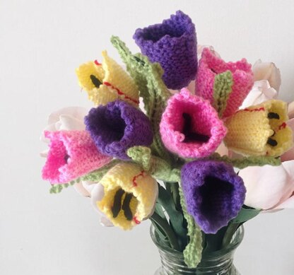 The pattern has instructions for knitting the tulips and leaves.