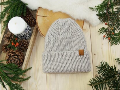The chunky / bulky weight beanie is worked in 1x1 ribbing and offers a variety of styling options as well as choices for round or square crowns, and smaller or larger sizes.